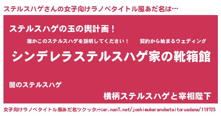 | ヘコむあだ名 | 『ステっふぃ~』『ステルスハゲ(小並感)』 |