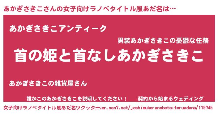 | 欧米人風あだ名 | 『アンジェラ・あかぎさきこ』 |