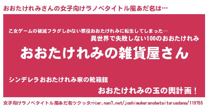 | 男性向けラノベタイトル風あだ名 | 『やはりおおたけれみの青春ラブコメはまちがっている 』 |