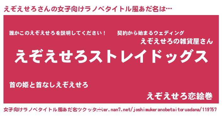 | 意味不明あだ名 | 『自称えぞえせろ』『ペロリンえぞえせろ』 |