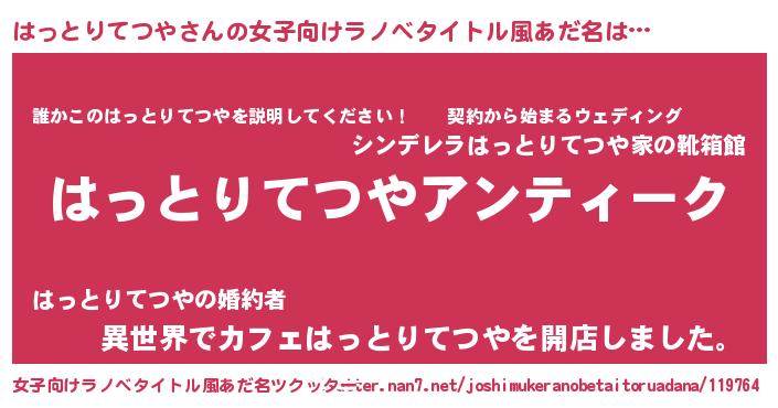 | 胡散臭い通販商品みたいなあだ名 | 『テレビで話題の高麗人参…その名も「はっとりてつや」』 |