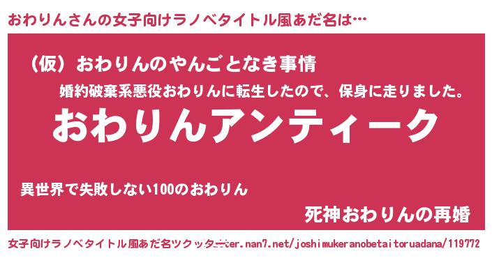 | 男性向けラノベタイトル風あだ名 | 『魔法科高校のおわりん』 |
