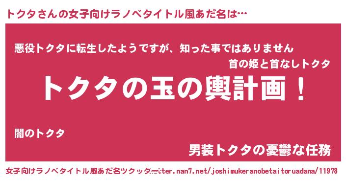 | ヒーロー風カッコイイあだ名 | 『仮面トクダー』『最強戦士トクタ』 |