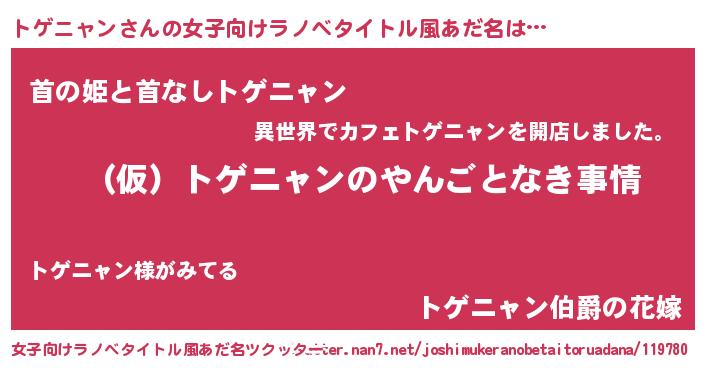 | 男性向けラノベタイトル風あだ名 | 『トゲニャンの憂鬱』 |