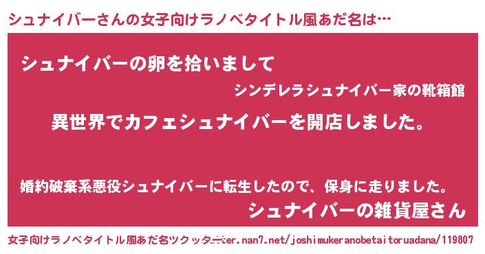 | 男性向けラノベタイトル風あだ名 | 『誰もが恐れるあのシュナイバーが、ぼくの専属メイドになるようです。』 |