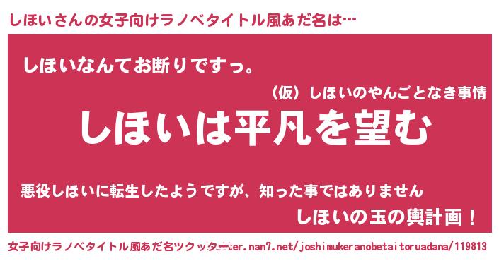 | 意味不明あだ名 | 『とにかく怪しいしほい』『自称しほい』 |