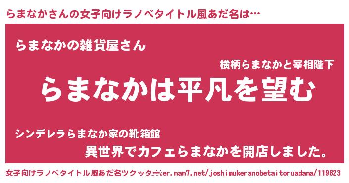 | 胡散臭い通販商品みたいなあだ名 | 『信頼と実績のペンダント…その名も「らまなか」』 |
