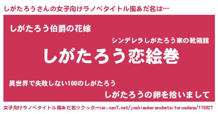 | 男性向けラノベタイトル風あだ名 | 『ノーゲーム・ノーシガタロウ』 |
