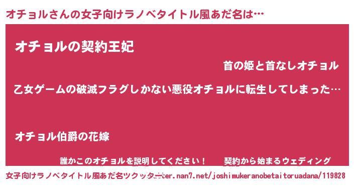 | 意味不明あだ名 | 『住所不定無職オチョル(53歳)』 |