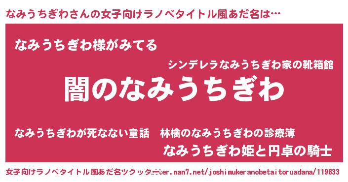 | 男性向けラノベタイトル風あだ名 | 『Re:なみうちぎわから始める異世界生活』 |