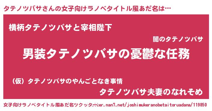 | 男性向けラノベタイトル風あだ名 | 『うちのタテノツバサが世界を掌握している!』 |