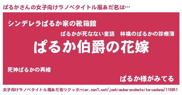 | 意味不明あだ名 | 『ぱるかフォーエバー』『自称ぱるか』 |