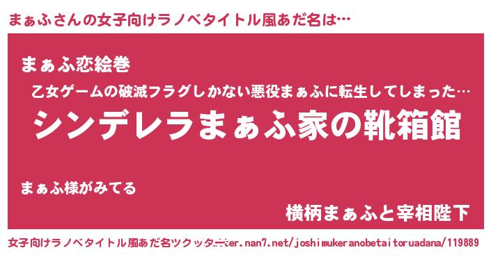 | ヒーロー風カッコイイあだ名 | 『友情の使者まぁふ』『仮面マァダー』 |