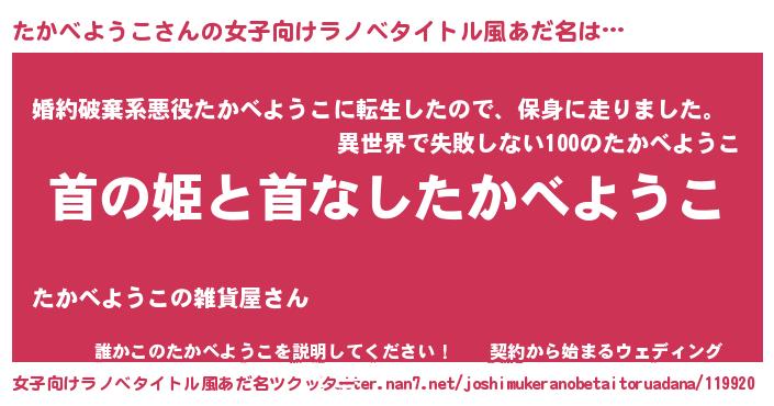| 料理風あだ名 | 『栗とたかべようこのマフィン』 |