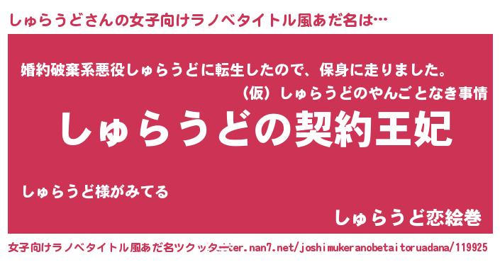 | 胡散臭い通販商品みたいなあだ名 | 『来世でも幸せになれる健康食品…その名も「しゅらうど」』 |