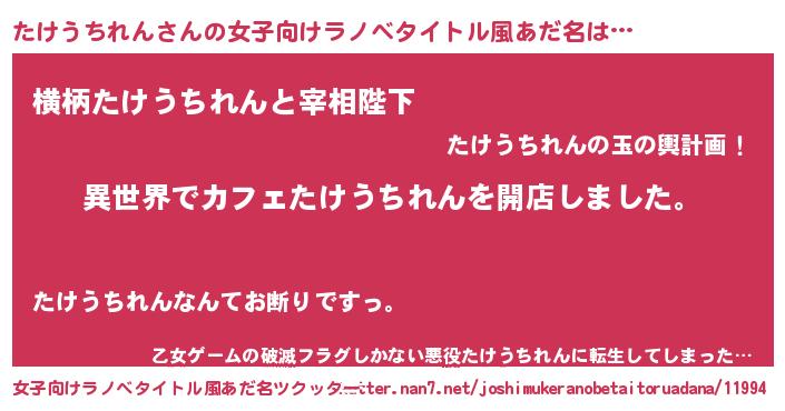 | 胡散臭い通販商品みたいなあだ名 | 『前代未聞の水素水…その名も「たけうちれん」』 |