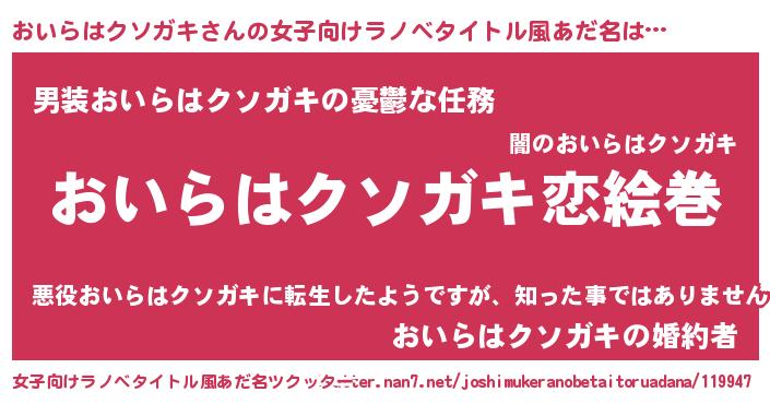 | 男性向けラノベタイトル風あだ名 | 『ノーゲーム・ノーオイラハクソガキ』 |