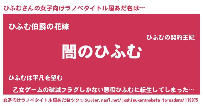 | 男性向けラノベタイトル風あだ名 | 『Re:ひふむから始める異世界生活』 |