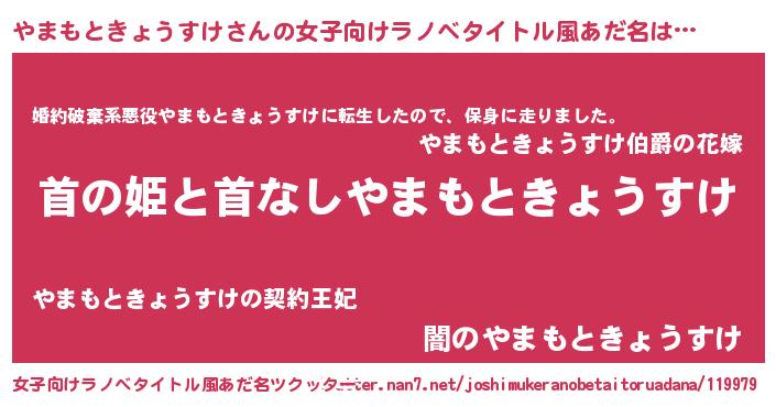 | ヒーロー風カッコイイあだ名 | 『超時空戦士ヤマモトキョウスケ』 |