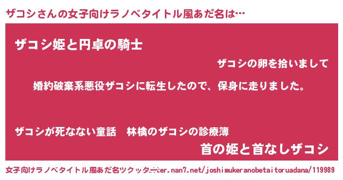 | 男性向けラノベタイトル風あだ名 | 『ザコシスレイヤー』『ザコシの憂鬱』 |