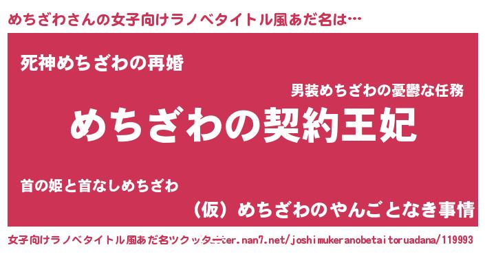 | 男性向けラノベタイトル風あだ名 | 『誰もが恐れるあのめちざわが、ぼくの専属メイドになるようです。』 |