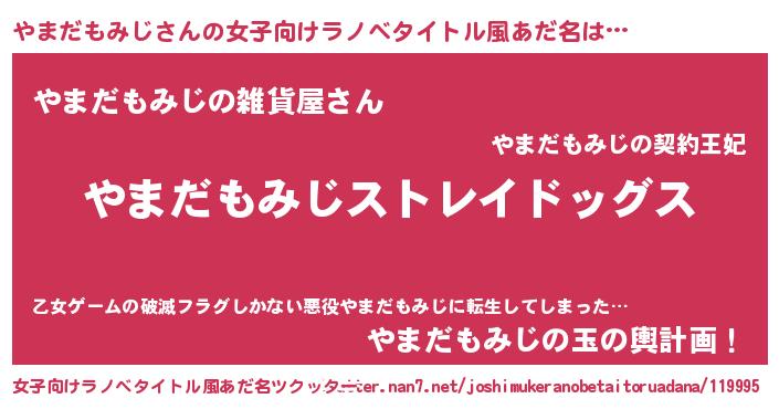 | 男性向けラノベタイトル風あだ名 | 『Re:やまだもみじから始める異世界生活』 |