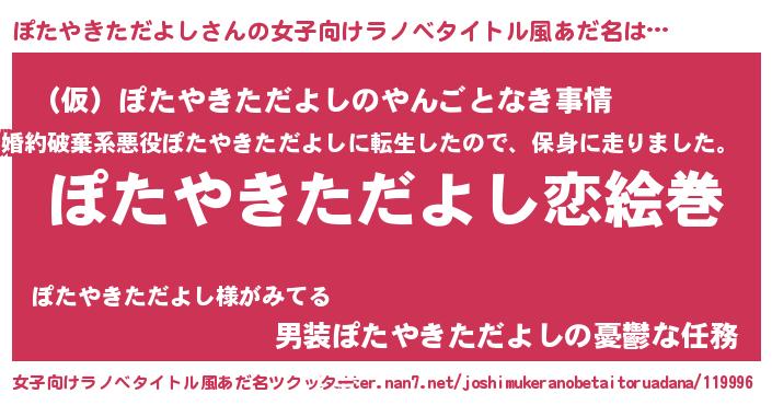 | 男性向けラノベタイトル風あだ名 | 『ノーゲーム・ノーポタヤキタダヨシ』 |