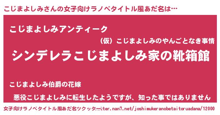 | 意味不明あだ名 | 『自称こじまよしみ』 |