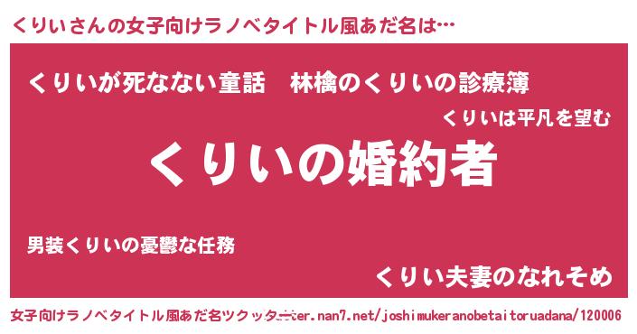 | 胡散臭い通販商品みたいなあだ名 | 『運命の人と巡り会える高級そうな壺…その名も「くりい」』 |