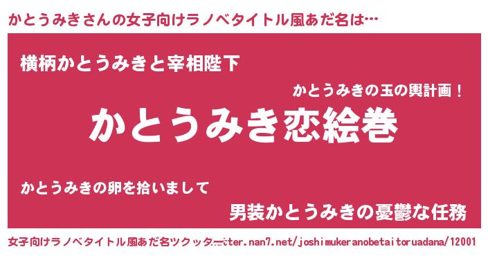 | 男性向けラノベタイトル風あだ名 | 『おまえをオタクにしてやるから、俺をかとうみきにしてくれ! 』 |
