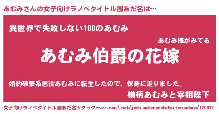 | ヘコむあだ名 | 『豆乳』『あむみ(遠い目)』 |