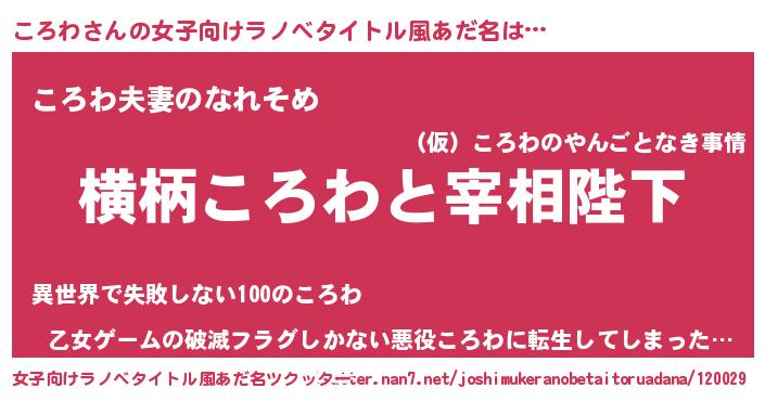 | ヘコむあだ名 | 『ころにー』『ころわ(小並感)』 |