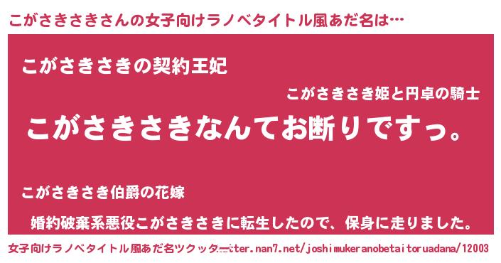 | 意味不明あだ名 | 『自称こがさきさき』 |