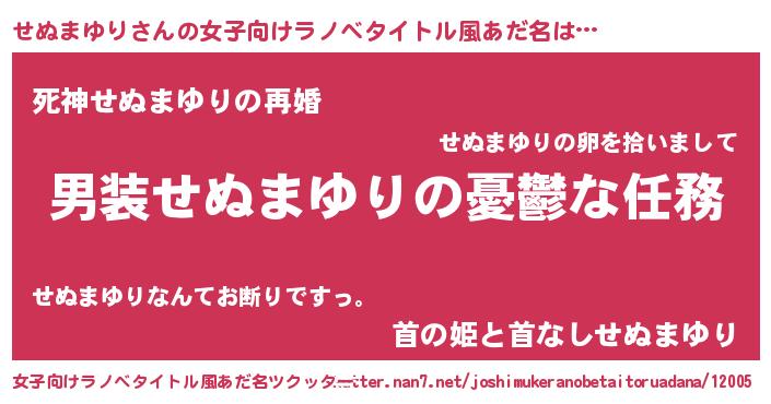 | 男性向けラノベタイトル風あだ名 | 『うちのせぬまゆりが世界を掌握している!』 |