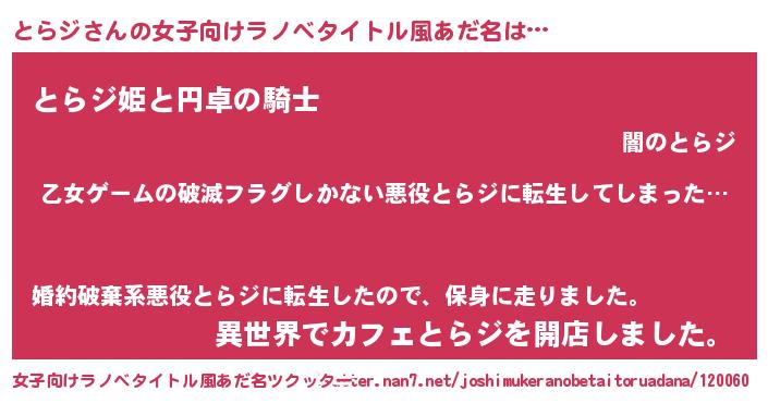 | ヘコむあだ名 | 『とらっふぃ~』『とらジ(笑)』 |