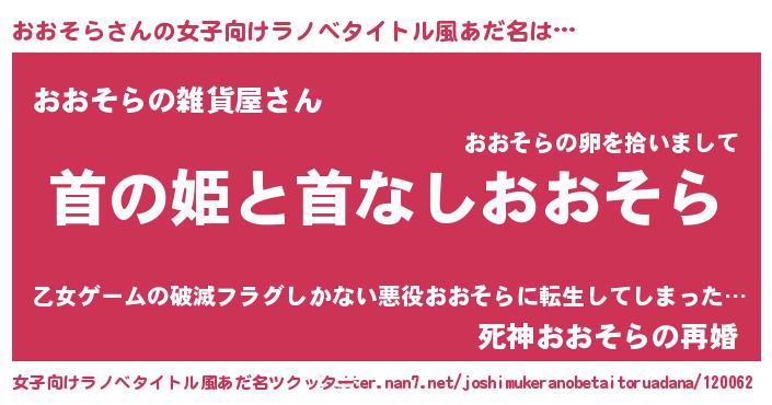 | 男性向けラノベタイトル風あだ名 | 『はたらくおおそらさま!』 |