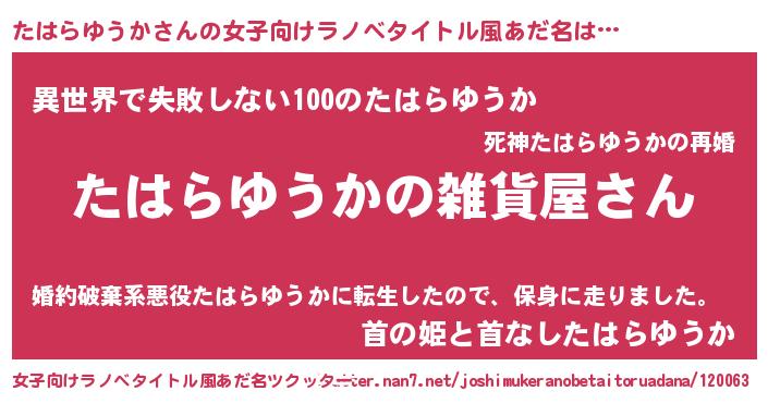 | 男性向けラノベタイトル風あだ名 | 『やはりたはらゆうかの青春ラブコメはまちがっている 』 |