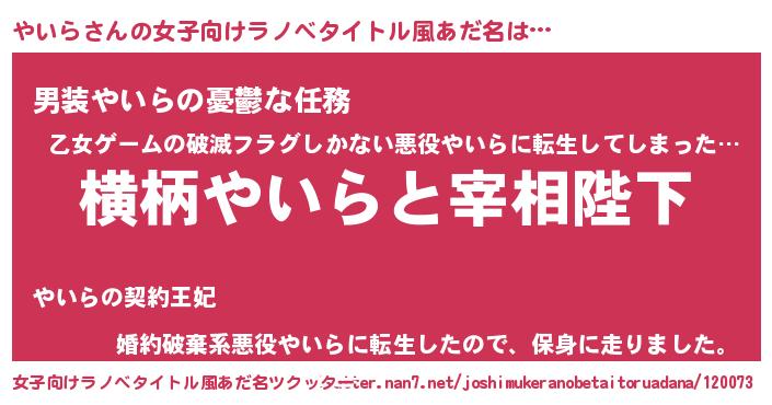 ヘコむあだ名 | 『やいら(苦笑)』『やいっふぃ~』 |