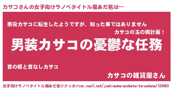 | 男性向けラノベタイトル風あだ名 | 『うちのカサコが世界を掌握している!』 |