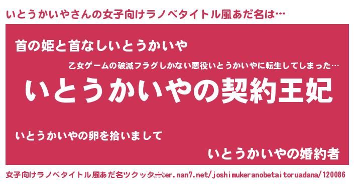 | 男性向けラノベタイトル風あだ名 | 『いとうかいやという概念が存在しない退屈な世界 』 |