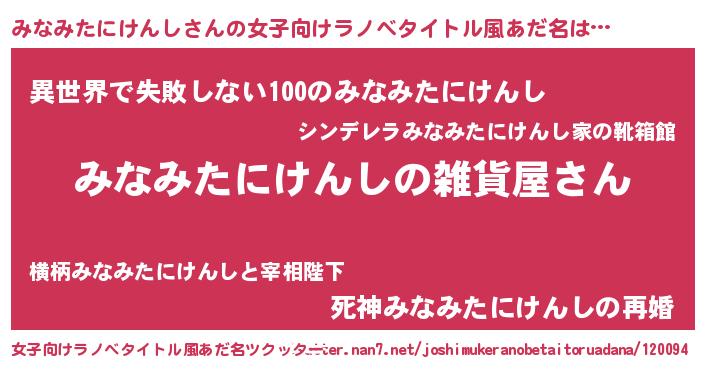 | 欧米人風あだ名 | 『みなみたにけんしクリステル』 |