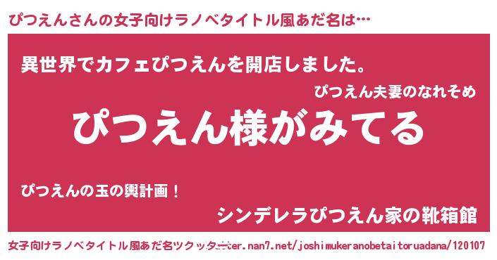 | 男性向けラノベタイトル風あだ名 | 『ぴつえんの嫁は女の子じゃないと思った?』 |