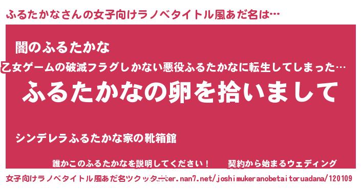 | 男性向けラノベタイトル風あだ名 | 『ふるたかなの嫁は女の子じゃないと思った?』 |