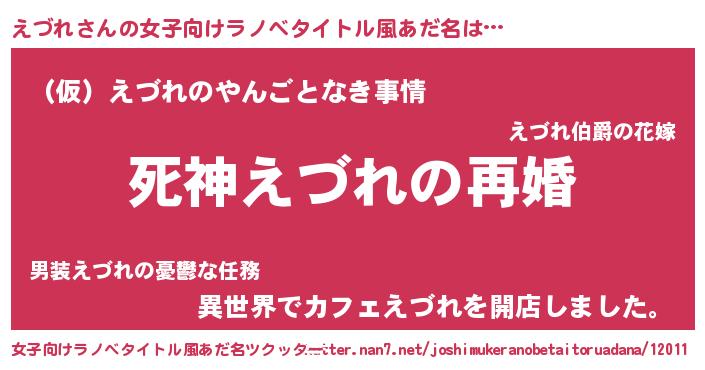 | 男性向けラノベタイトル風あだ名 | 『ノーゲーム・ノーエヅレ』 |