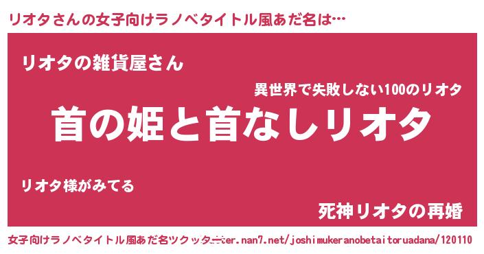 | 男性向けラノベタイトル風あだ名 | 『はたらくリオタさま!』 |