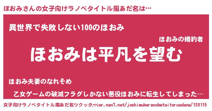 | 胡散臭い通販商品みたいなあだ名 | 『信頼と実績のサプリメント…その名も「ほおみ」』 |
