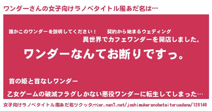 | 男性向けラノベタイトル風あだ名 | 『魔法科高校のワンダー』 |