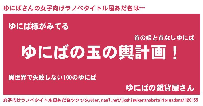 | 男性向けラノベタイトル風あだ名 | 『転生したらゆにばだった件』 |