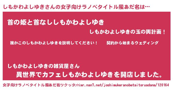 | 男性向けラノベタイトル風あだ名 | 『シモカワヨシユキアートオンライン』 |