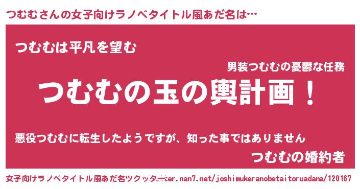 | 男性向けラノベタイトル風あだ名 | 『つむむ~年齢イコール彼女いない歴の魔法使い~』 |